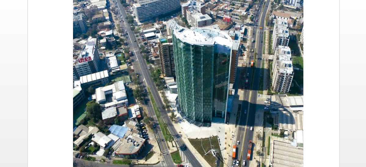 Observando la imagen del edificio en la segunda página del texto ingresado en Contraloría, se aprecia que el proyecto contempla una sola estructura, edificio en donde operan actualmente todas las empresas ligadas a ese holding empresarial, llamando la atención que el señor Andrés Nahmías, constructor del edificio, haya renunciado a su membresía en la CChC.